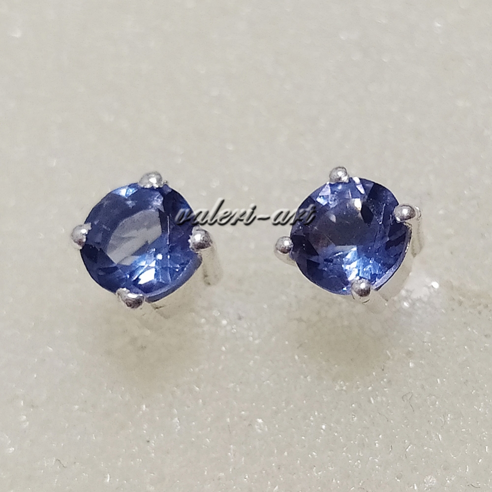 Серебряные серьги гвоздики с натуральными танзанитами