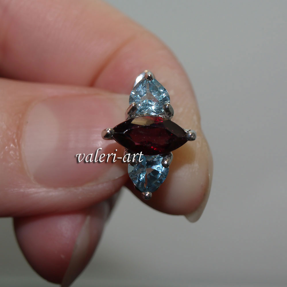 Нежные маленькие серебряные серьги с голубым топазом и гранатом в серебре 925 пробы. Смотрится нежно и утонченно. Идеально для любительниц небольших , негромоздких нежных украшений.