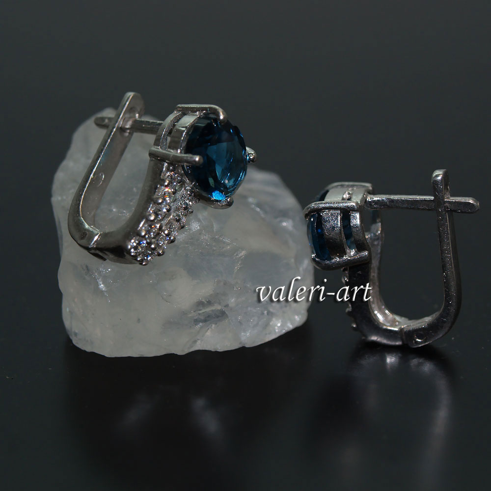 Серьги с лондон топазом в серебре 925 пробы. Украшения из лондон топаза