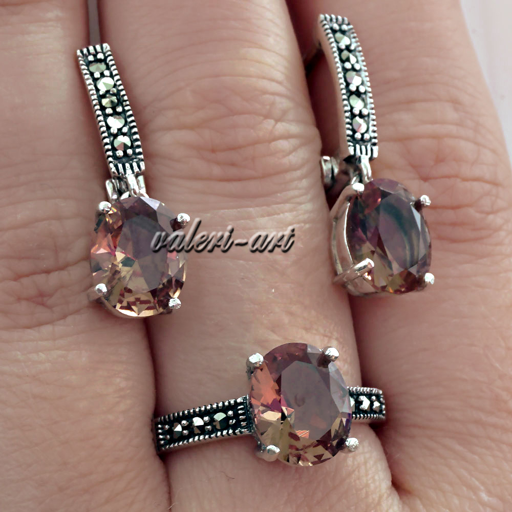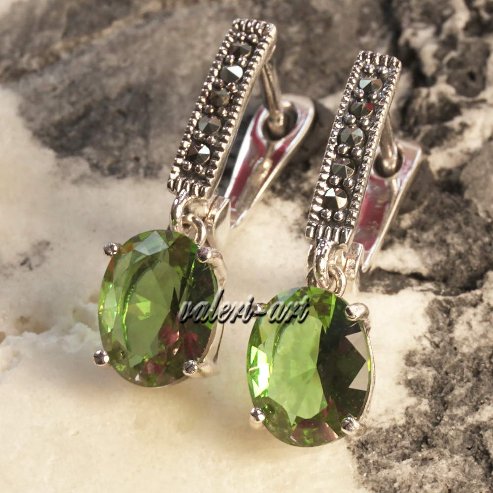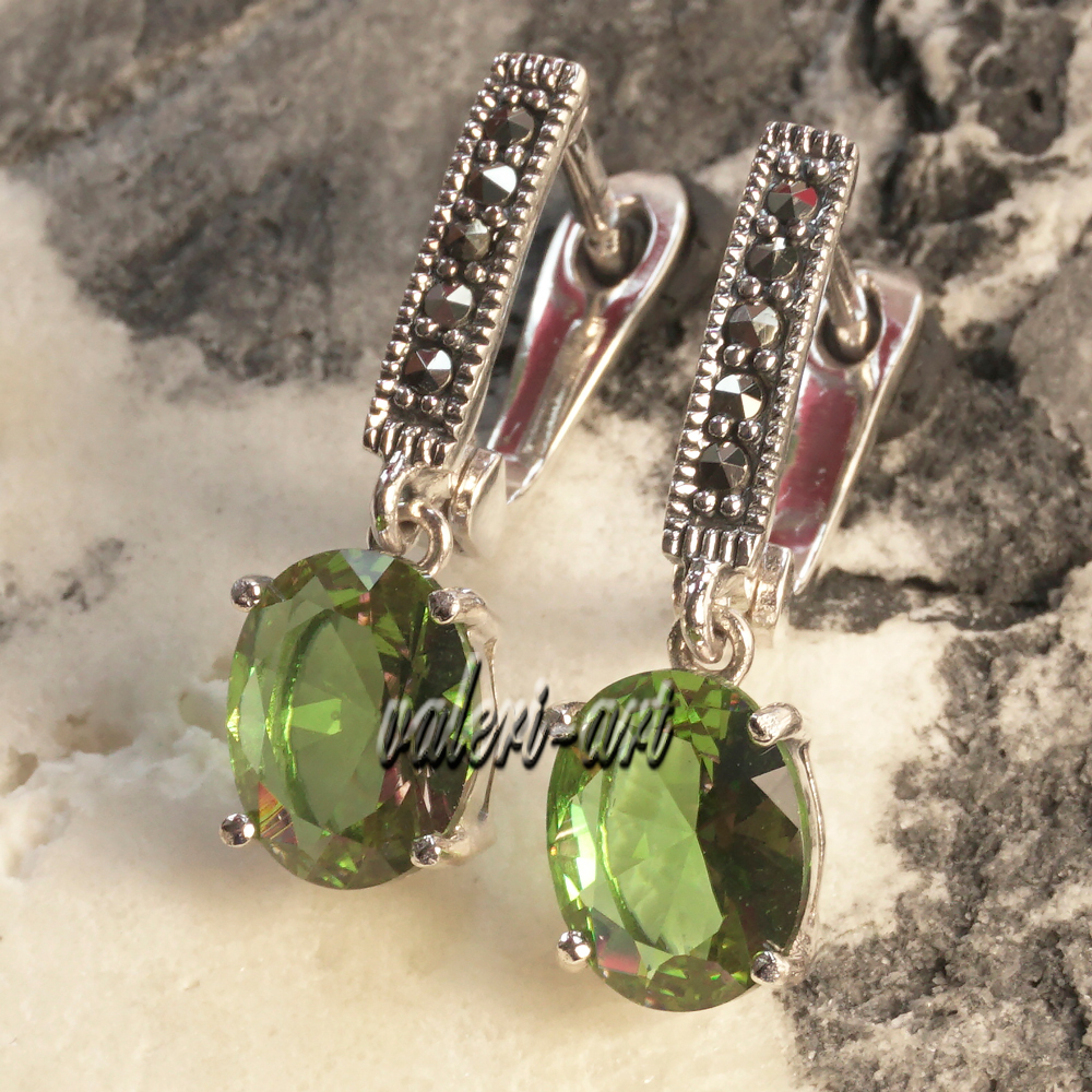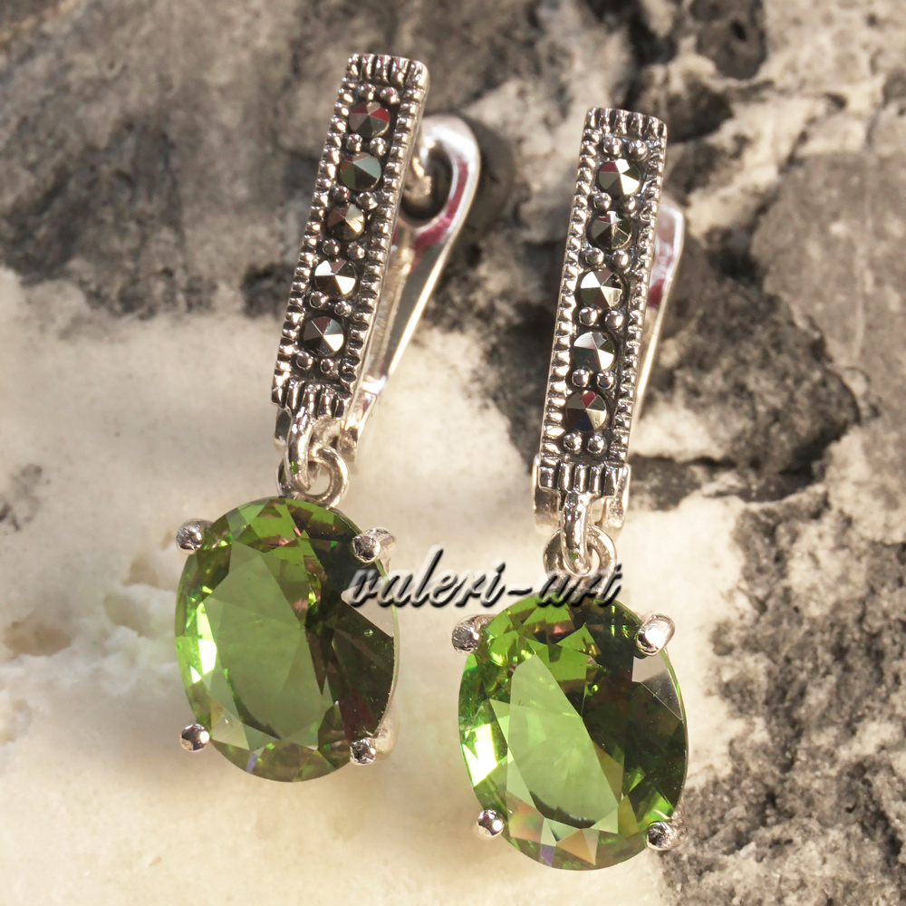 Купить серьги с султанитами и марказитами в ювелирном бутике Valeri-Art в Москве по сниженным ценам. Большой выбор серёг с султанитом и марказитом с актуальными фото. Скидки до -30% при покупке полного комплекта. Серебряные серьги с султанитом г/т и марказитом. Роскошные серьги султанит и марказит в серебре. Очень эффектное, очень яркое украшение серьги из родированного серебра и султанита г/т и марказитами. Камень меняет свой цвет в зависимости от освещения. Камень то зеленый, то медово-горчичный, то фиолетовый. Идеальный подарок! Способность султанита менять цвет – его главная прелесть и загадка. Известно о таких же свойствах аметиста и александрита, но у нашего камня более разнообразная гамма оттенков. При тусклом освещении или в пасмурный день он зеленый, словно молодая трава. При свете поярче он приобретает коричневые, янтарные, желтые оттенки.