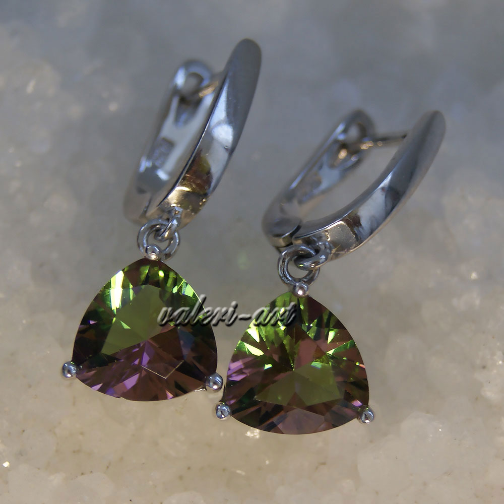 Серебряные серьги с султанитом г/т. Роскошные серьги. Очень эффектное, очень яркое украшение из родированного серебра и султанита г/т. Камень меняет свой цвет в зависимости от освещения. Камень то зеленый, то медово-горчичный, то фиолетовый. Идеальный подарок! Способность султанита менять цвет – его главная прелесть и загадка. Известно о таких же свойствах аметиста и александрита, но у нашего камня более разнообразная гамма оттенков. При тусклом освещении или в пасмурный день он зеленый, словно молодая трава. При свете поярче он приобретает коричневые, янтарные, желтые оттенки.