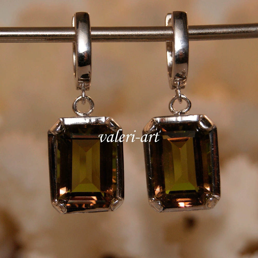 Серебряные серьги с султанитом г/т. Роскошные серьги. Очень эффектное, очень яркое украшение из родированного серебра и султанита г/т. Камень меняет свой цвет в зависимости от освещения. Камень то зеленый, то медово-горчичный, то фиолетовый. Идеальный подарок! Способность султанита менять цвет – его главная прелесть и загадка. Известно о таких же свойствах аметиста и александрита, но у нашего камня более разнообразная гамма оттенков. При тусклом освещении или в пасмурный день он зеленый, словно молодая трава. При свете поярче он приобретает коричневые, янтарные, желтые оттенки.