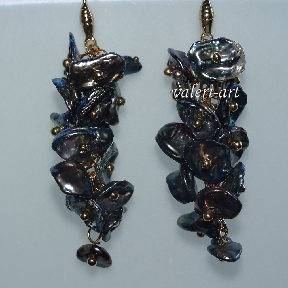 Серьги с жемчугом кейши цвет чёрный в позолоте 16 kt. Украшения из жемчуга кейши