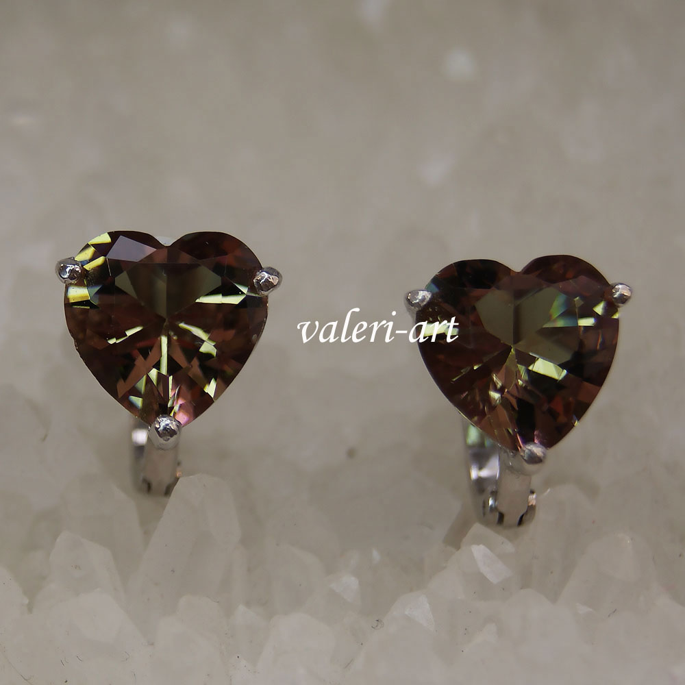 Серебряные серьги с султанитом г/т. Роскошные серьги. Очень эффектное, очень яркое украшение из родированного серебра и султанита г/т. Камень меняет свой цвет в зависимости от освещения. Камень то зеленый, то медово-горчичный, то фиолетовый. Идеальный подарок! Способность султанита менять цвет – его главная прелесть и загадка. Известно о таких же свойствах аметиста и александрита, но у нашего камня более разнообразная гамма оттенков. При тусклом освещении или в пасмурный день он зеленый, словно молодая трава. При свете поярче он приобретает коричневые, янтарные, желтые оттенки.