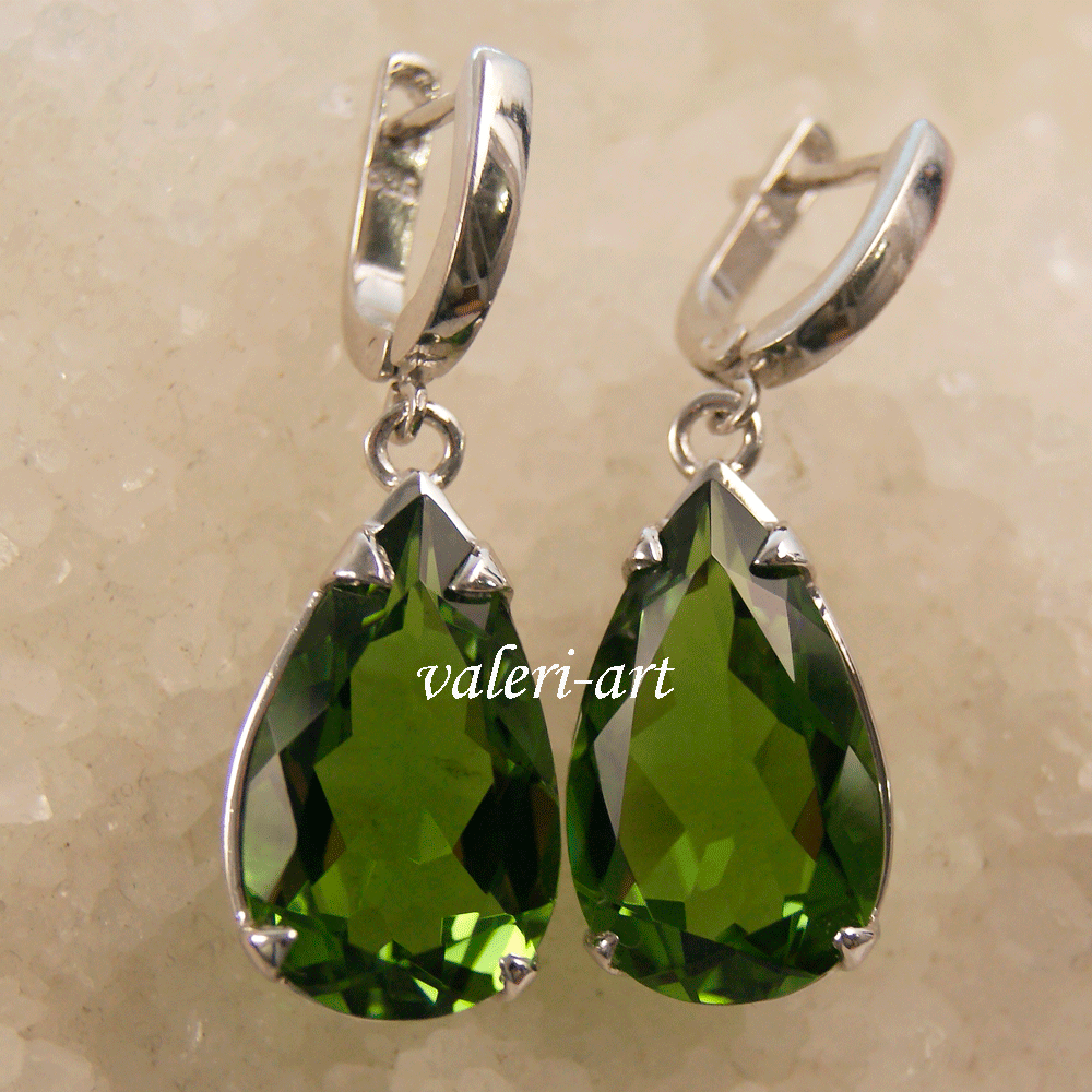 Серебряные серьги с султанитом г/т. Роскошные серьги. Очень эффектное, очень яркое украшение из родированного серебра и султанита г/т. Камень меняет свой цвет в зависимости от освещения. Камень то зеленый, то медово-горчичный, то фиолетовый. Идеальный подарок! Способность султанита менять цвет – его главная прелесть и загадка. Известно о таких же свойствах аметиста и александрита, но у нашего камня более разнообразная гамма оттенков. При тусклом освещении или в пасмурный день он зеленый, словно молодая трава. При свете поярче он приобретает коричневые, янтарные, желтые оттенки.
