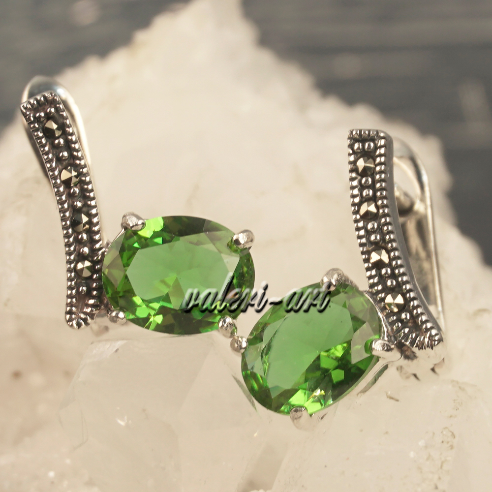 Султанит серебряные серьги с марказитами