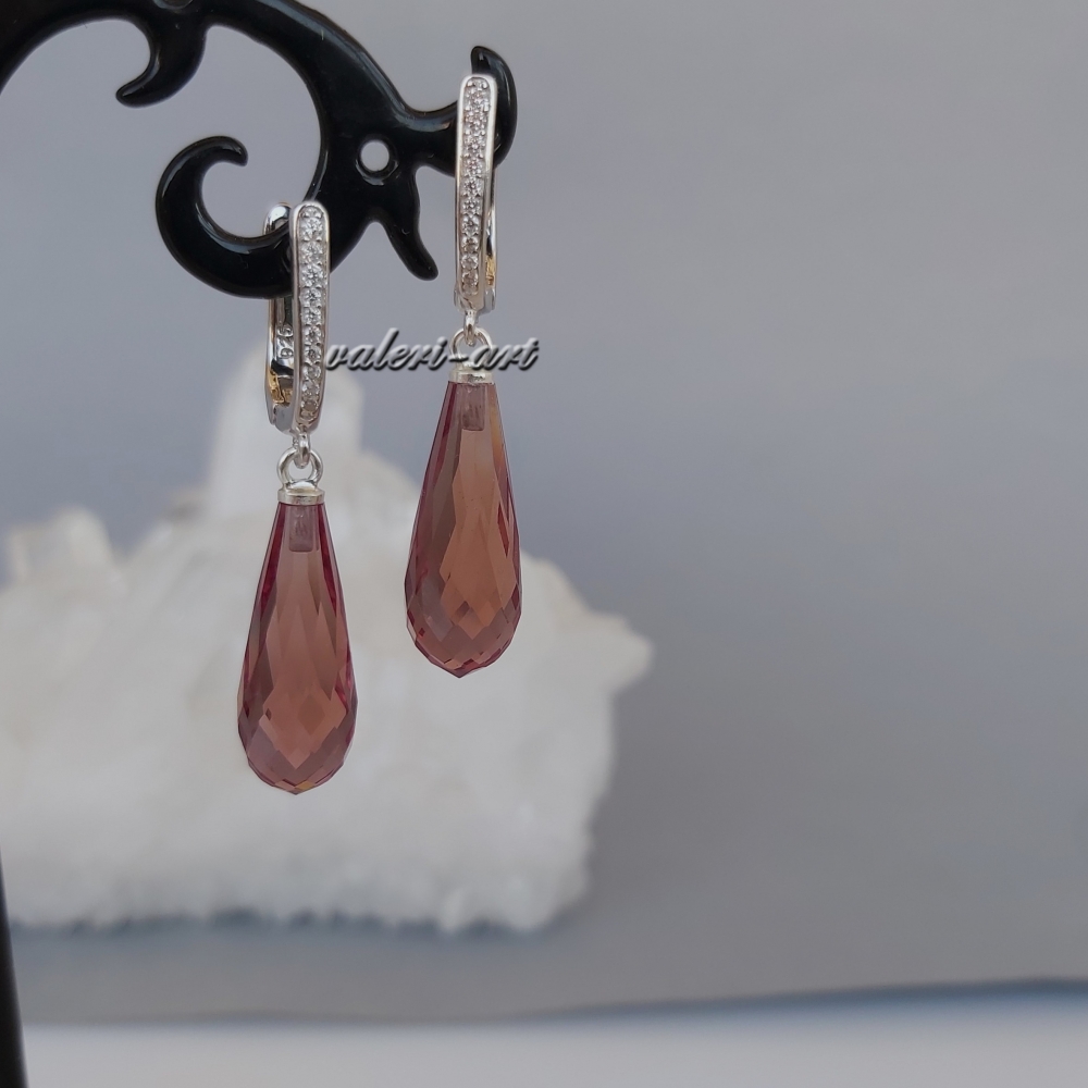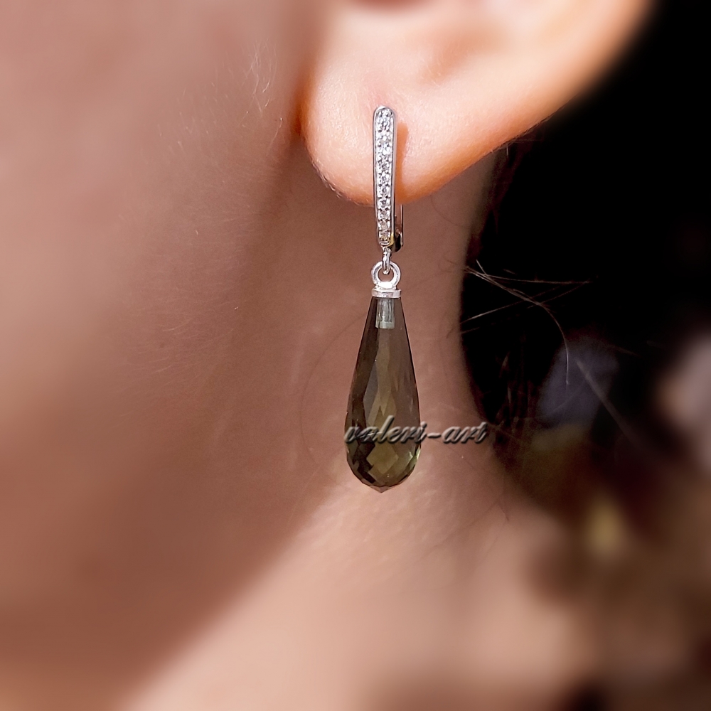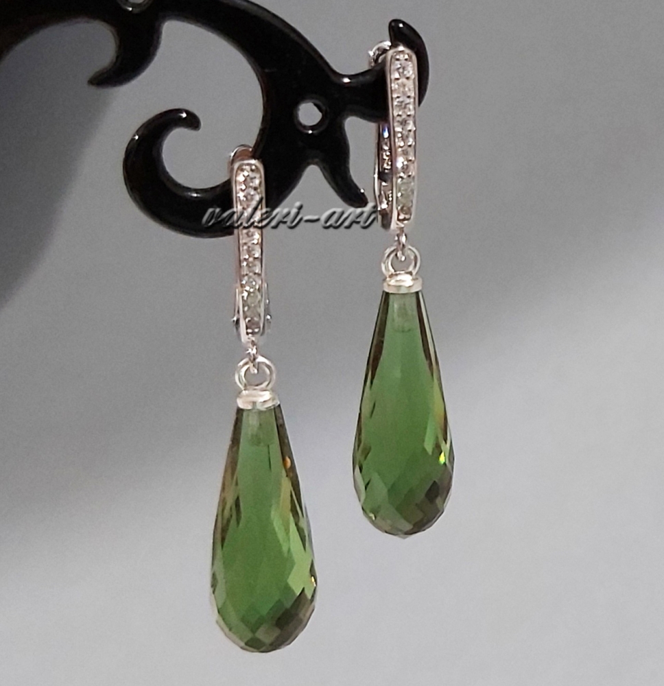 Серебряные серьги с султанитом капля