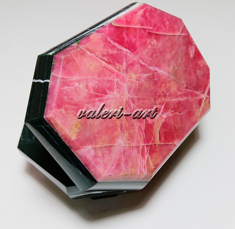 Шкатулка из натурального родонита и долерита