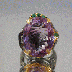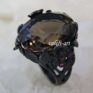 #0002110 Кольцо с голубым топазом, сапфирами и хромдиопсидами