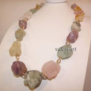 #0001205 Колье, бусы из необработанного природного аметиста, пренита, флюорита, цитрина