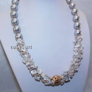 #0000965 Бусы, колье из жемчуга кейши цвет серебро в позолоте 16 kt. Украшения из жемчуга